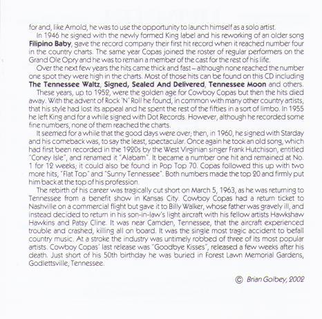 COWBOY COPAS 'Tennessee Waltz' CD AJA 5434
