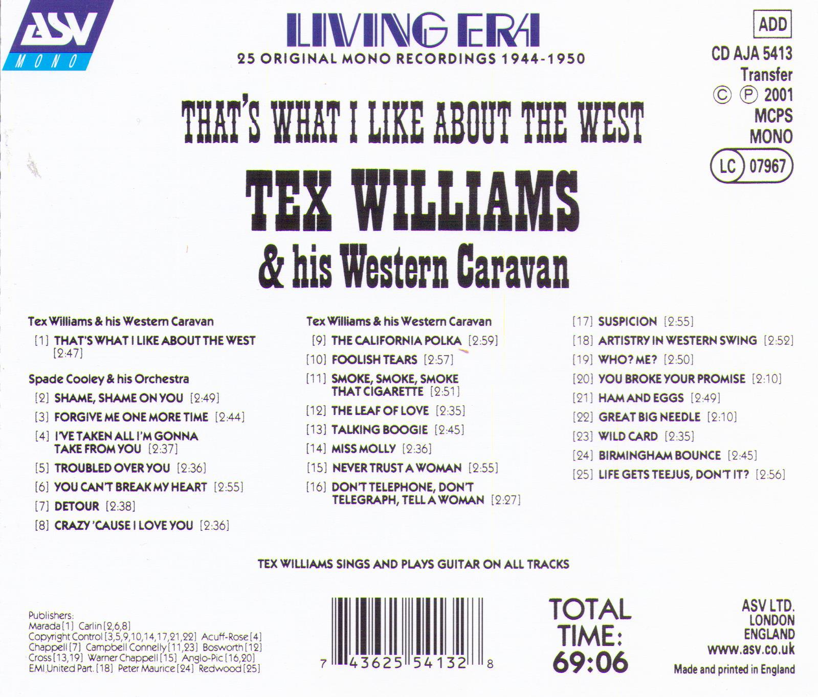 TEX WILLIAMS "That's What I Like About The West" - CD AJA 5413