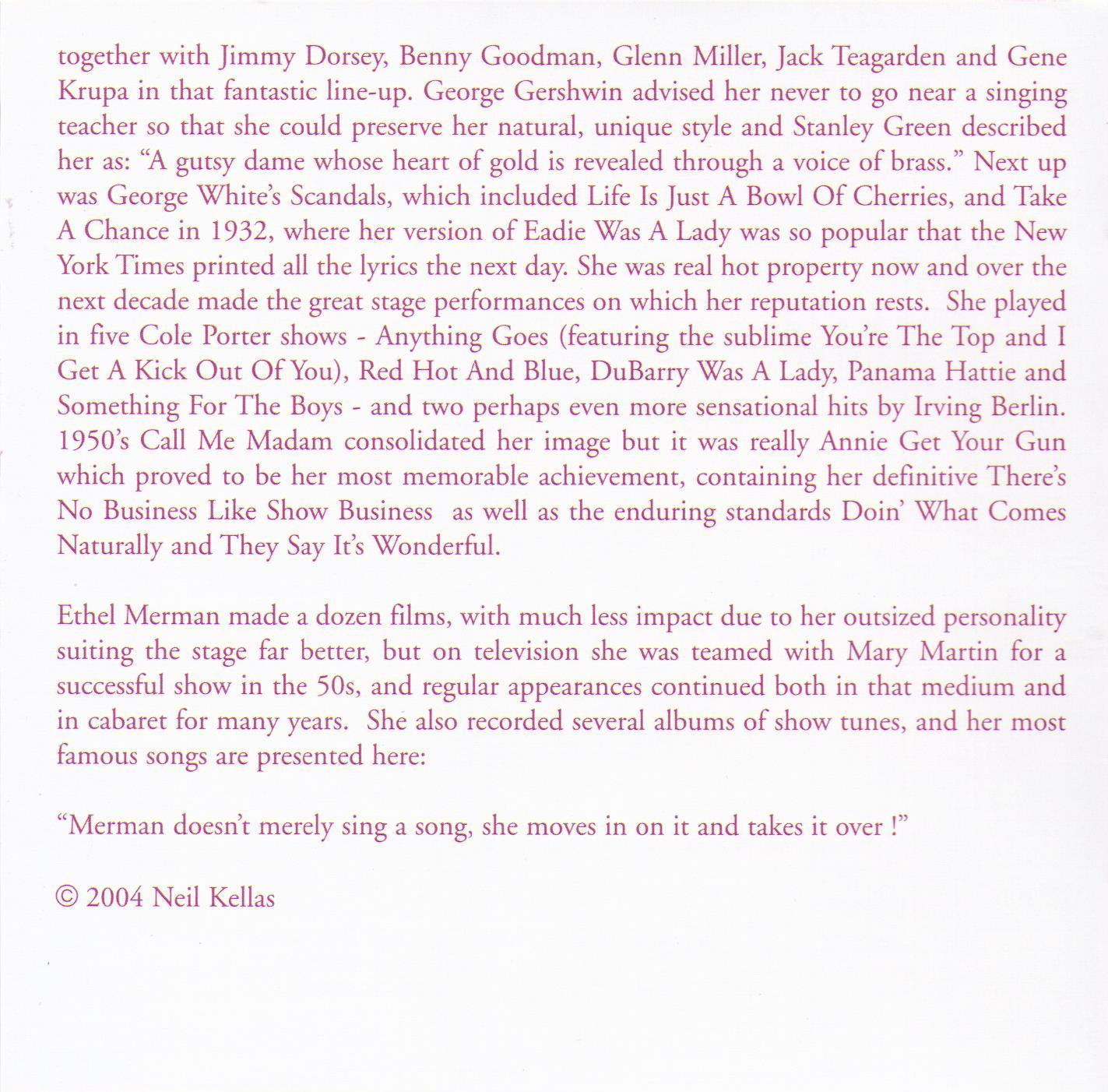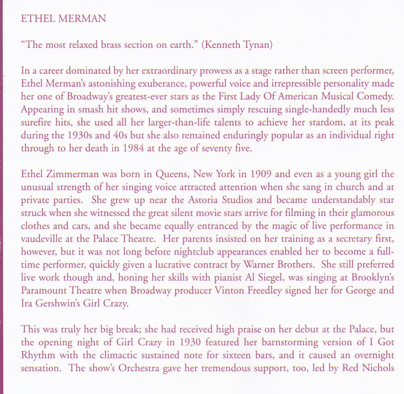 ETHEL MERMAN "I Got Rhythm" CD 26406