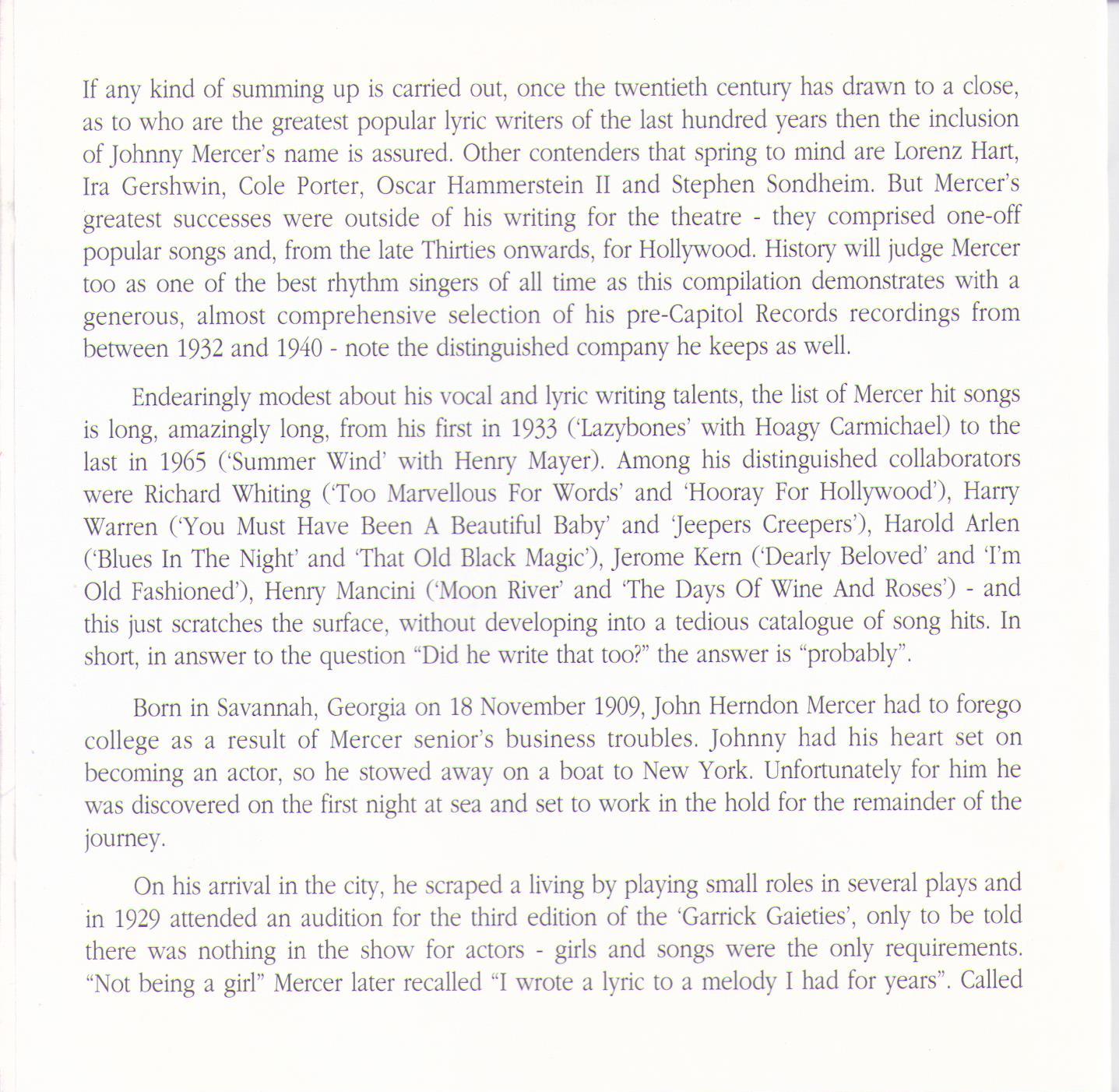 JOHNNY MERCER "Pardon My Southern Accent" CDHD 203