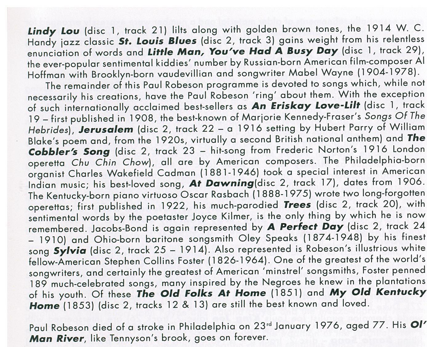 PAUL ROBESON - Ol' Man River - His 56 Finest - RTS 4116 2-cd Set