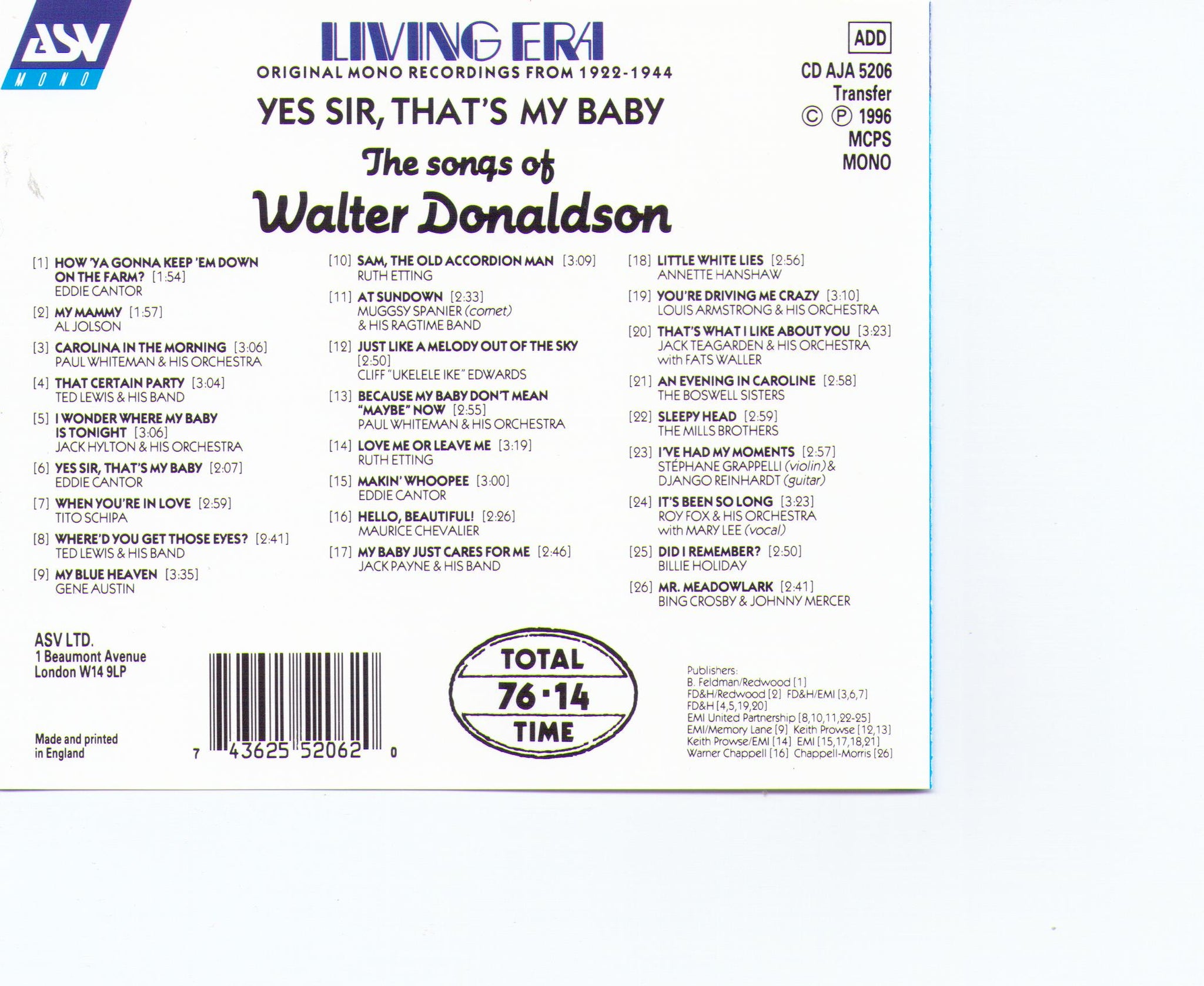 Walter Donaldson "Yes Sir, That's My Baby" - CD AJA 5206