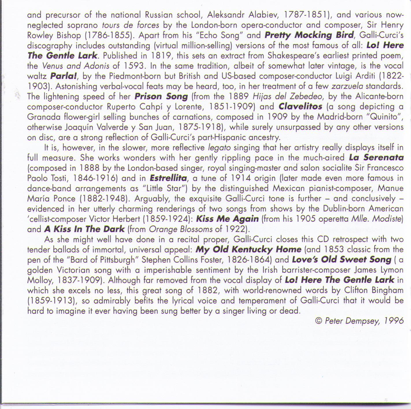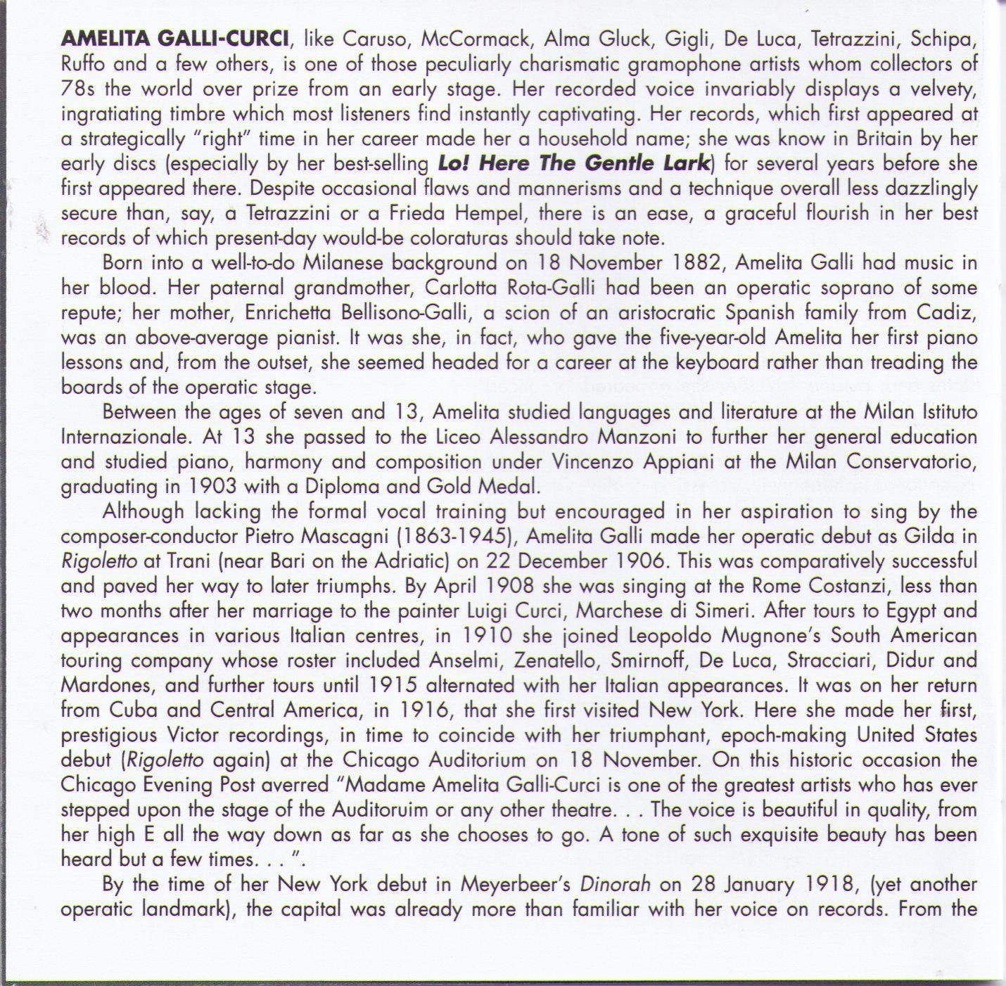 AMELITA GALLI-CURCI "Lo! Here The Gentle Lark" CD AJA 5201