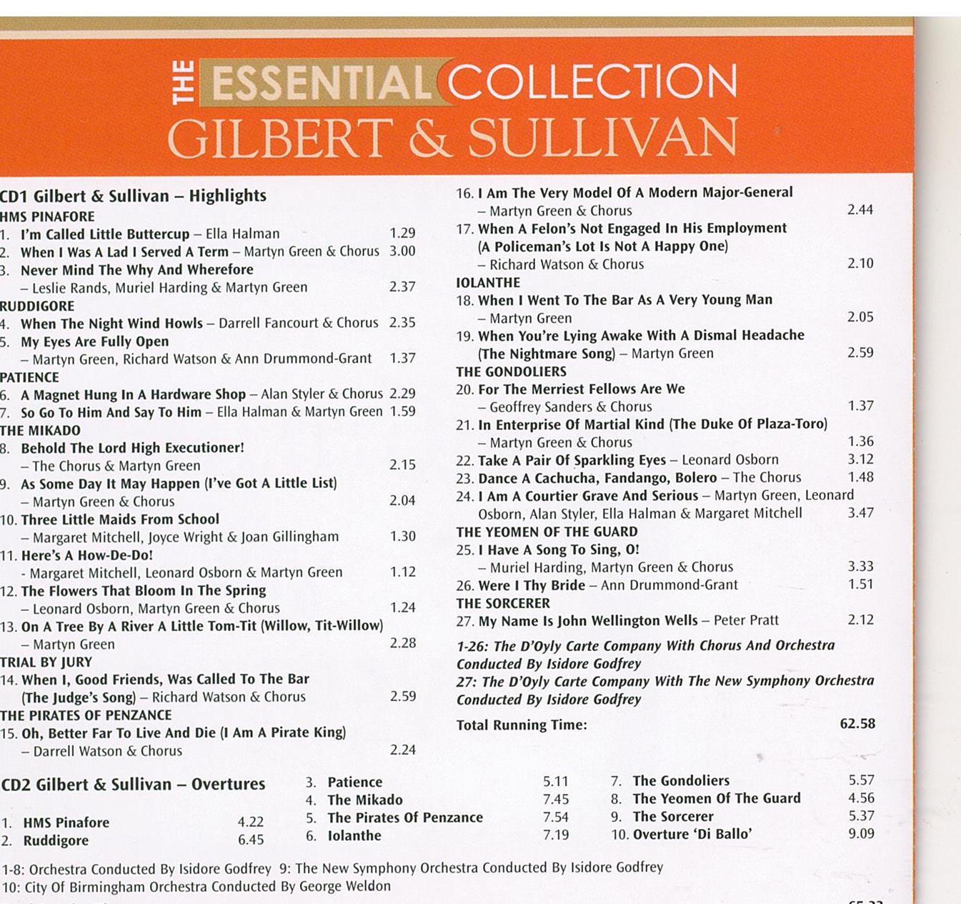 GILBERT & SULLIVAN 'Essential Collection' AVC 995 - 2-cd Set