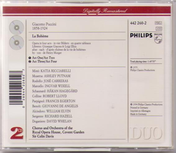 JOSE CARRERAS / ATIA RICCIARELLI "La Boheme" 2cd-442 260-2