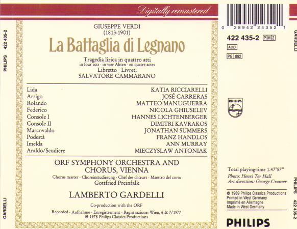 JOSE CARRERAS "La Battaglia di Legnano" 2cd-422 435-2