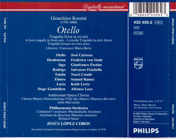 JOSE CARRERAS "Otello" 2cd-432 456-2