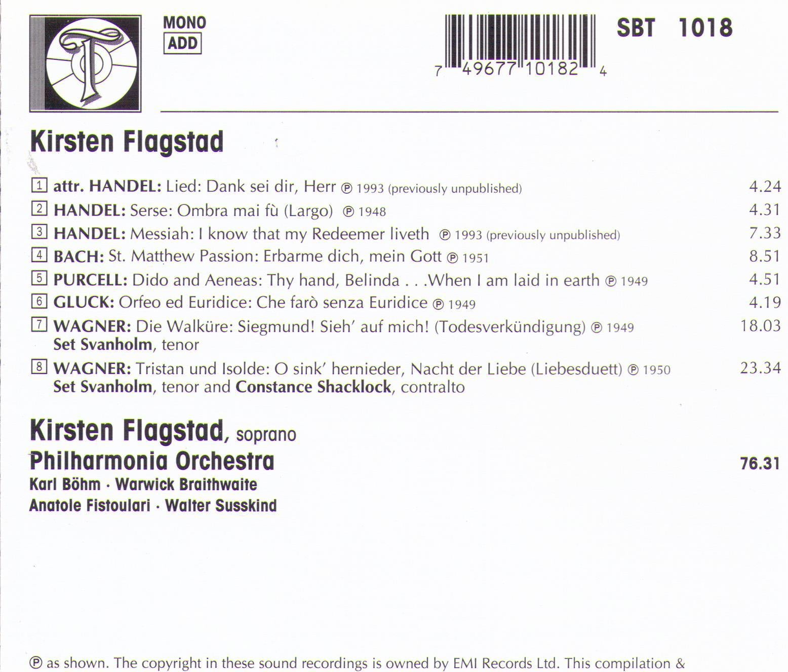 KIRSTEN FLAGSTAD - SBT 1018 Handel-Bach-Purcell-Gluck Wagner Set Svanholm-Karl Bohm