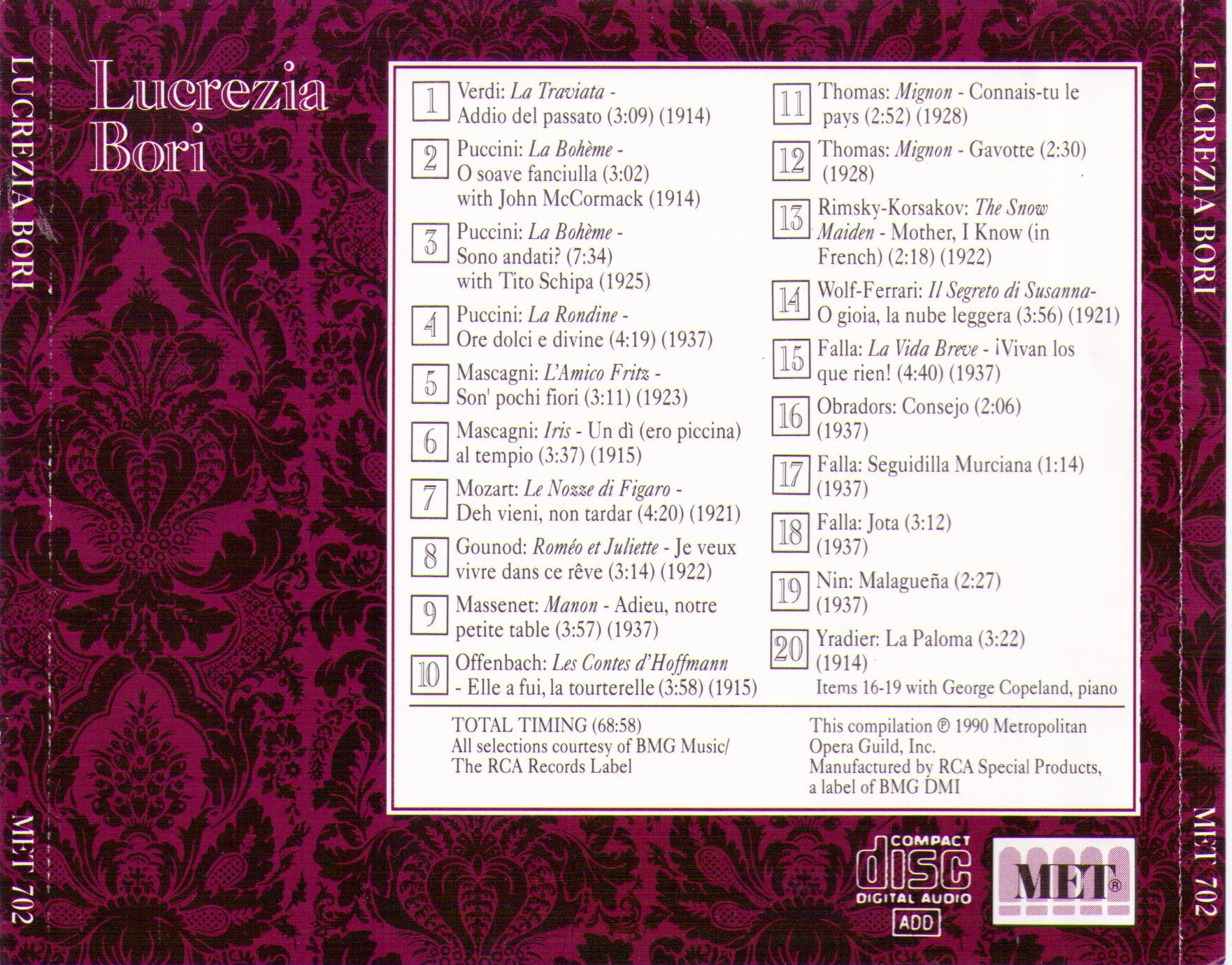 Lucrezia Bori - The Met Centenarians - MET 702 CD