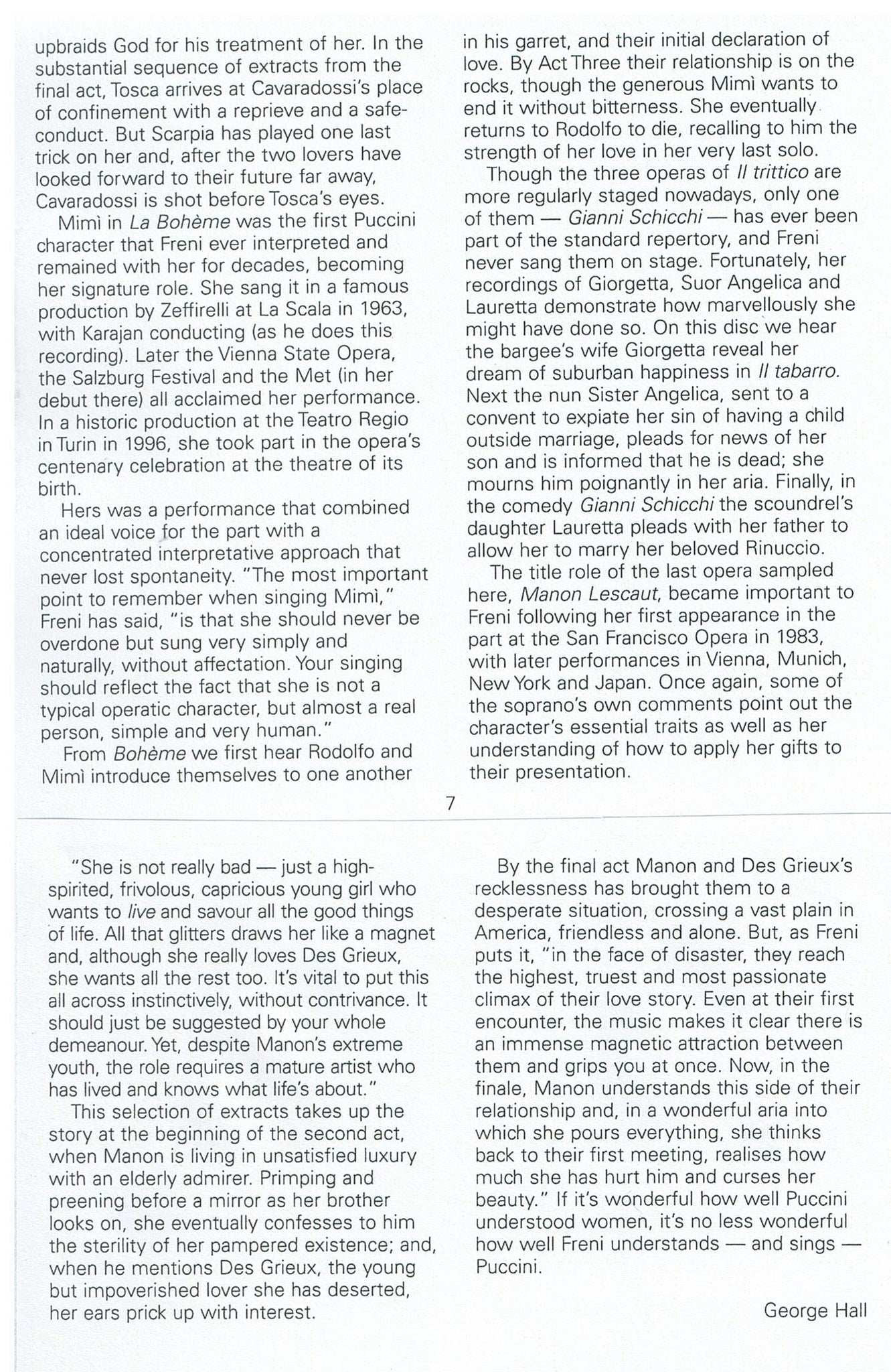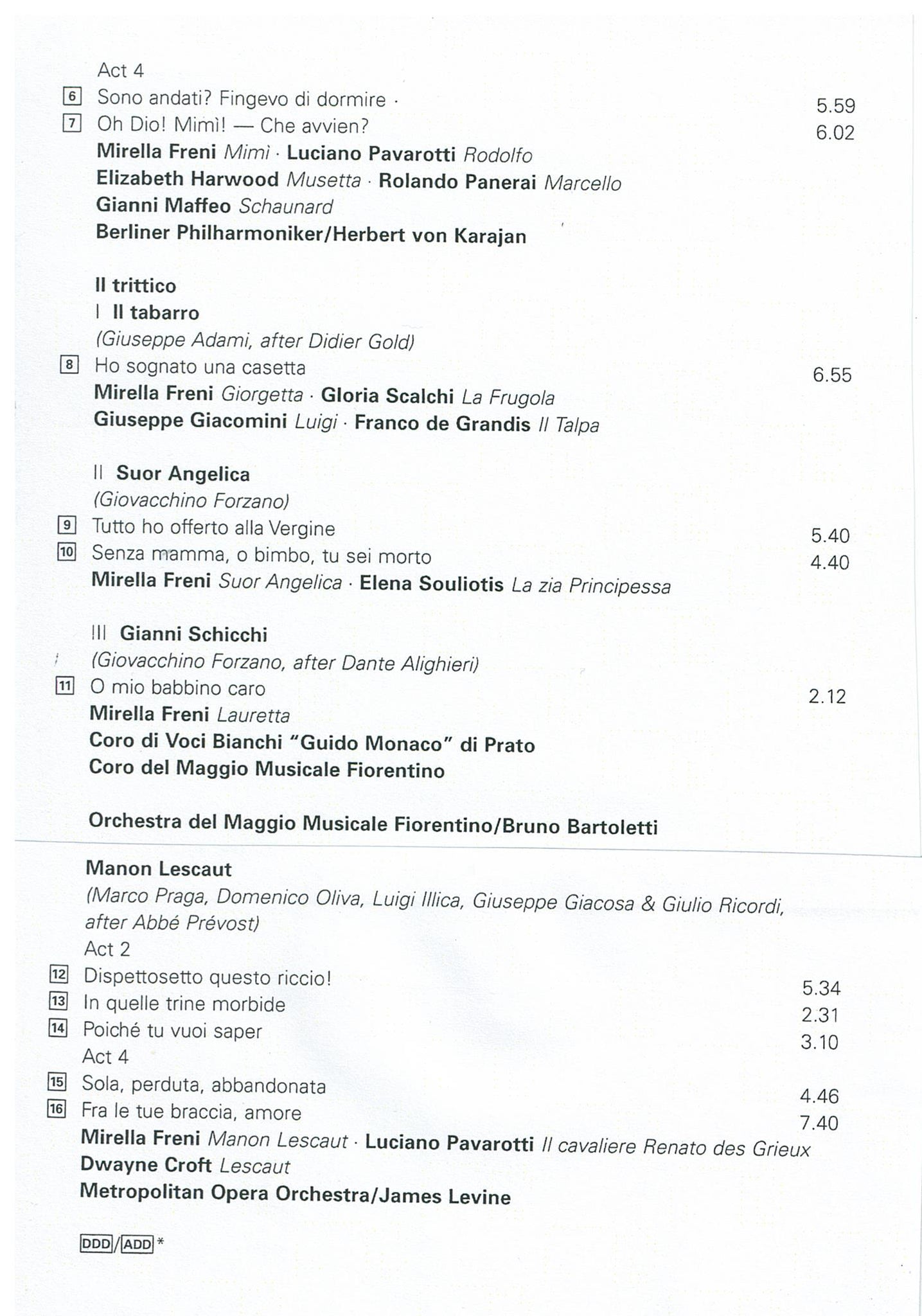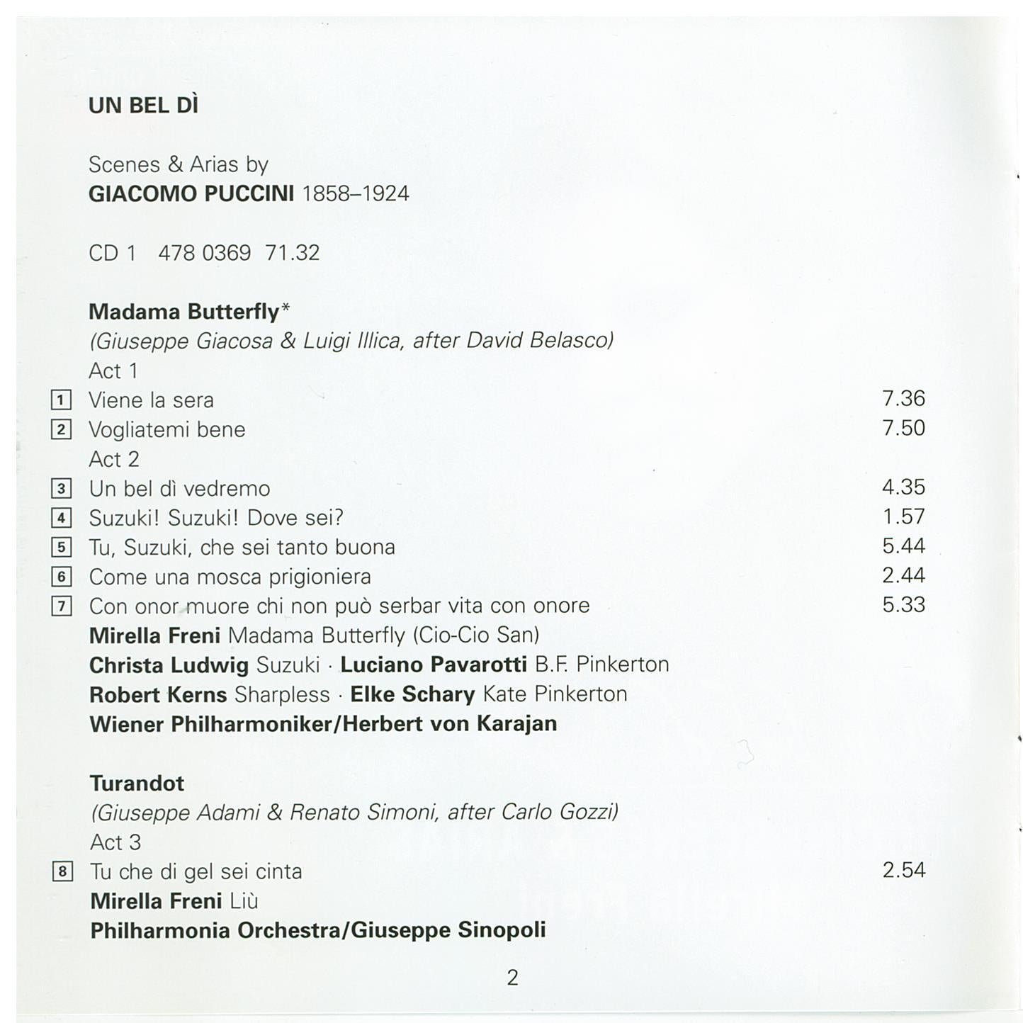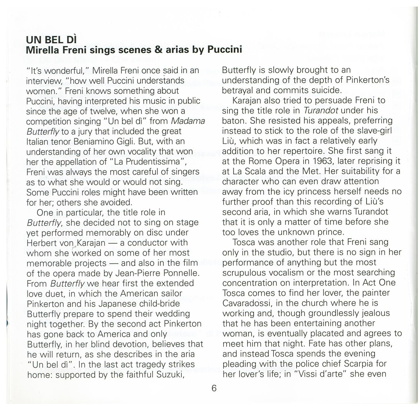 MIRELLA FRENI 'Un Bel Di' Puccini Scenes & Arias 478 0368 (2-CD Set $29.95)