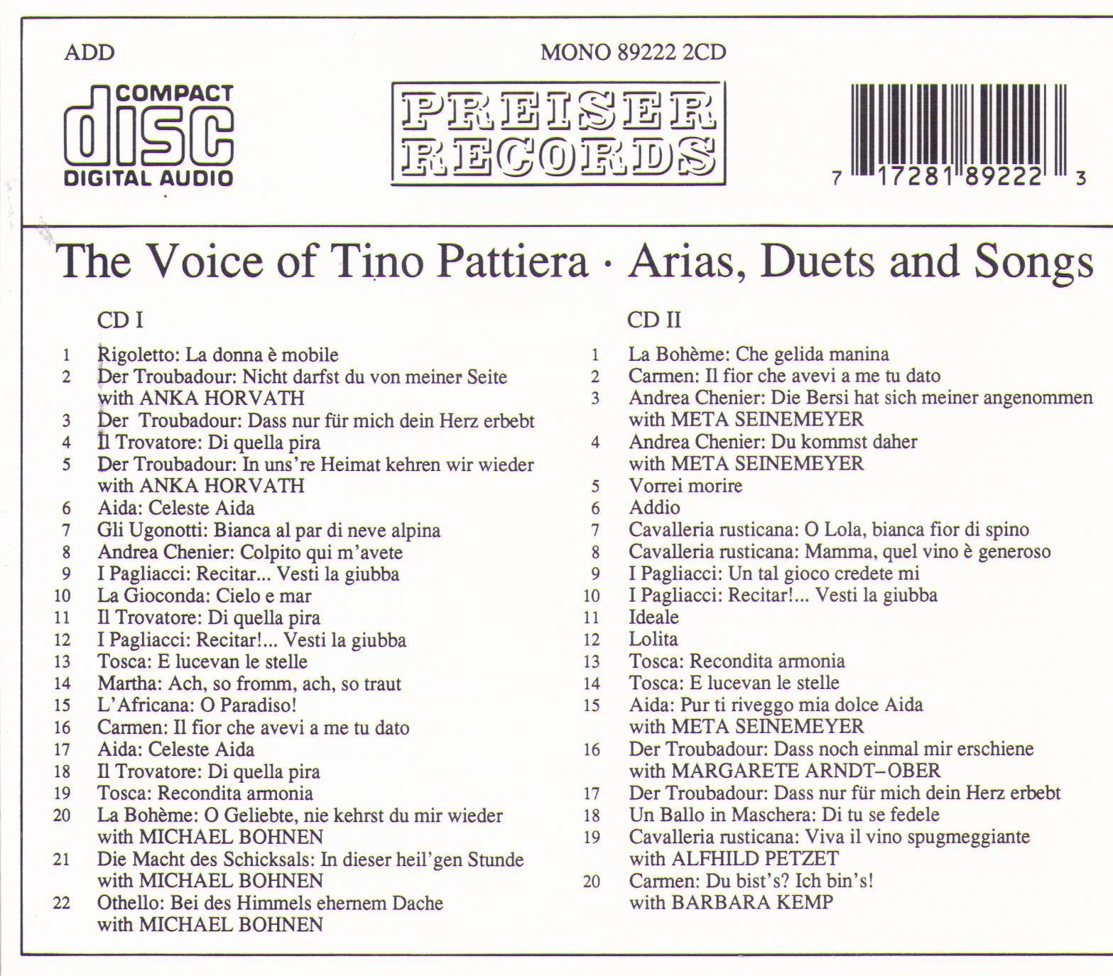 Tino Pattiera - Arias/Duets/Songs - 2-CD89222