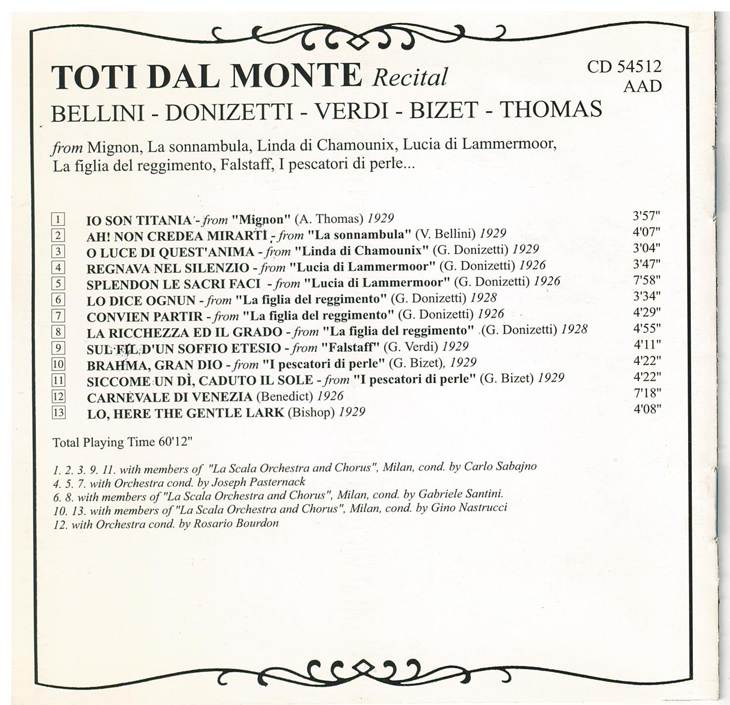 TOTI DAL MONTE 'RECITAL - CD 54512'