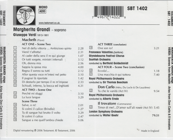 Scenes from Macbeth/ Arias from Don Carlo & Il Trovatore