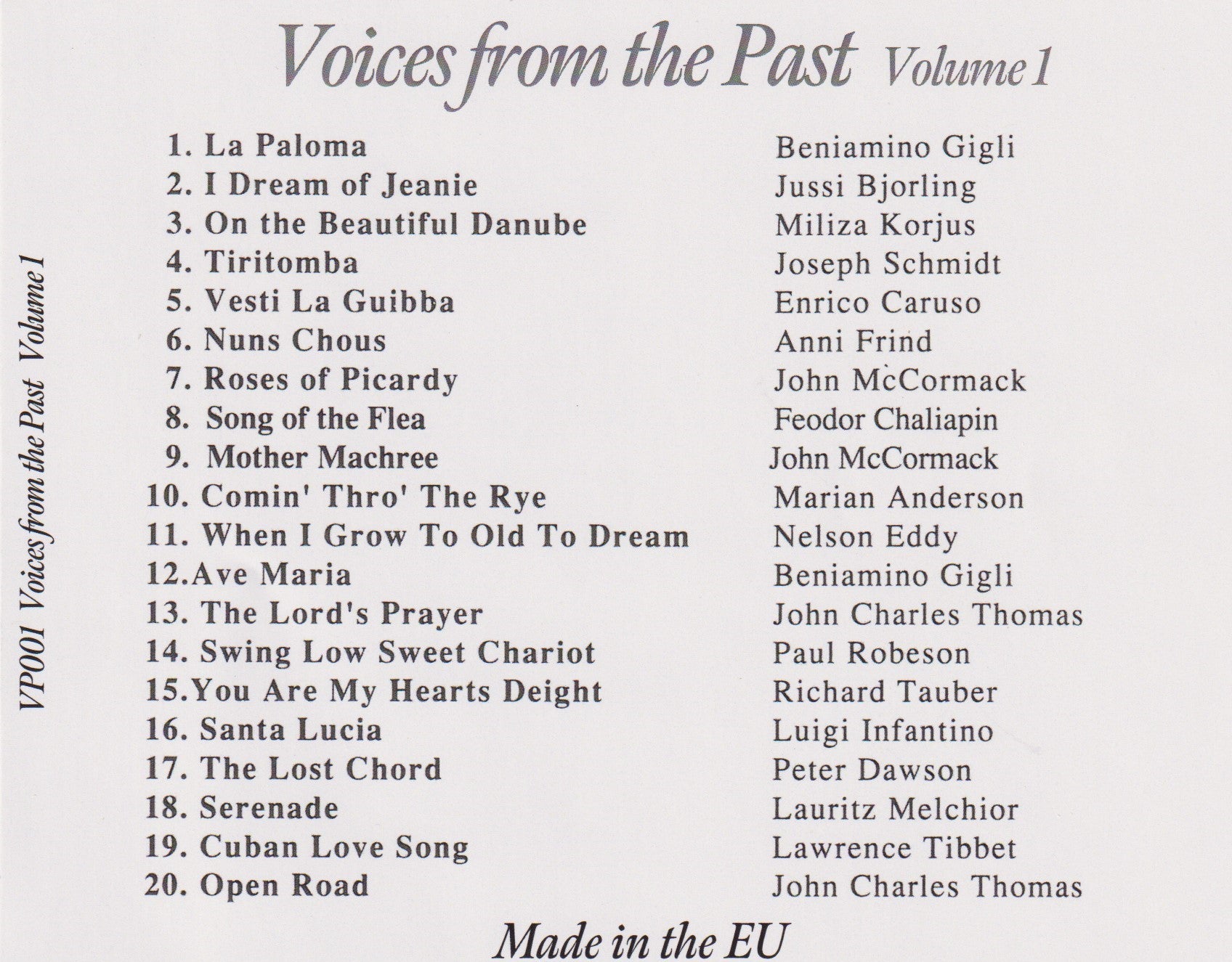 and featuring other artists:- Beniamino Gigli, Jussi Bjorling, Meliza Korjus, Joseph Schmidt         and many others