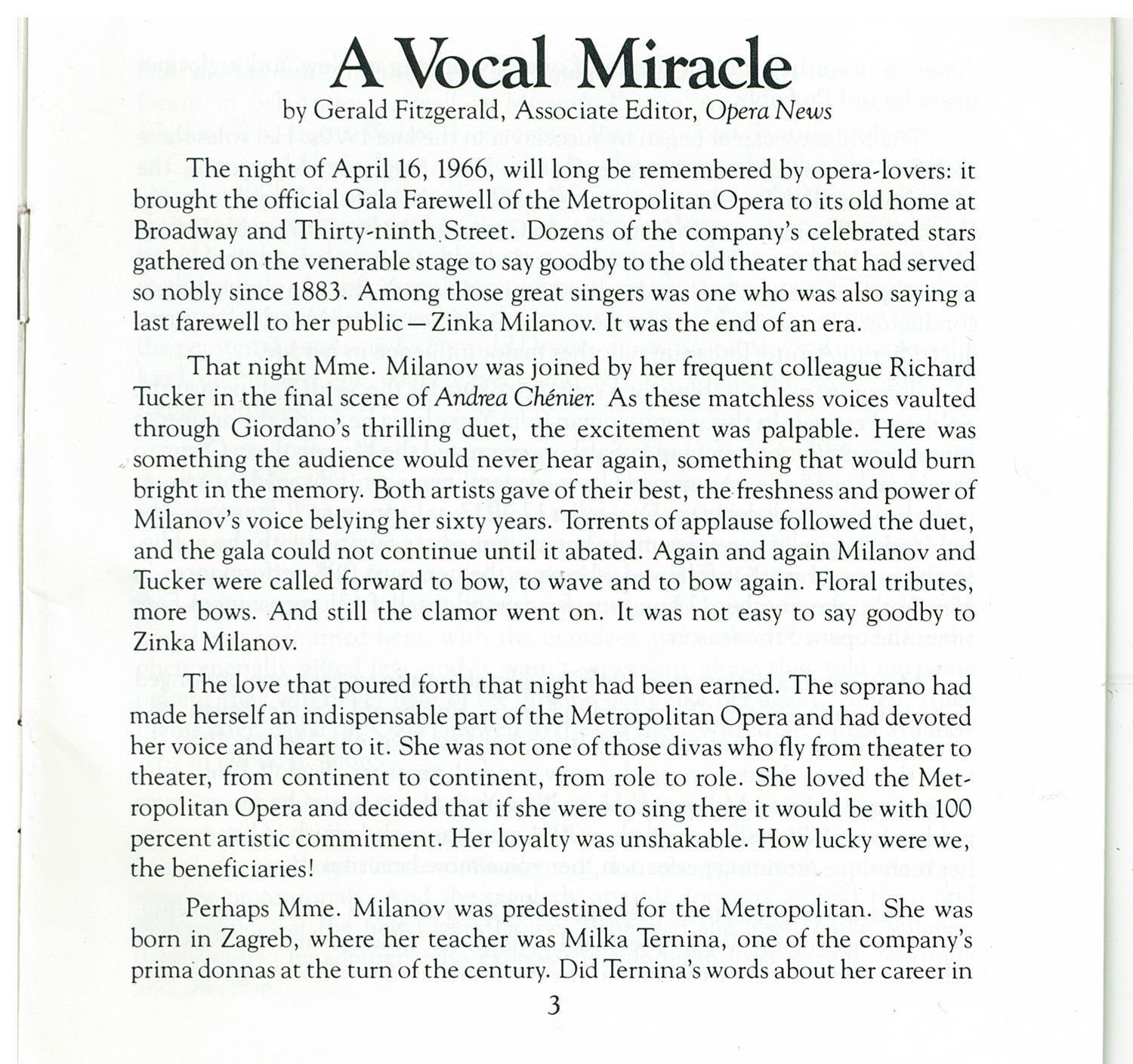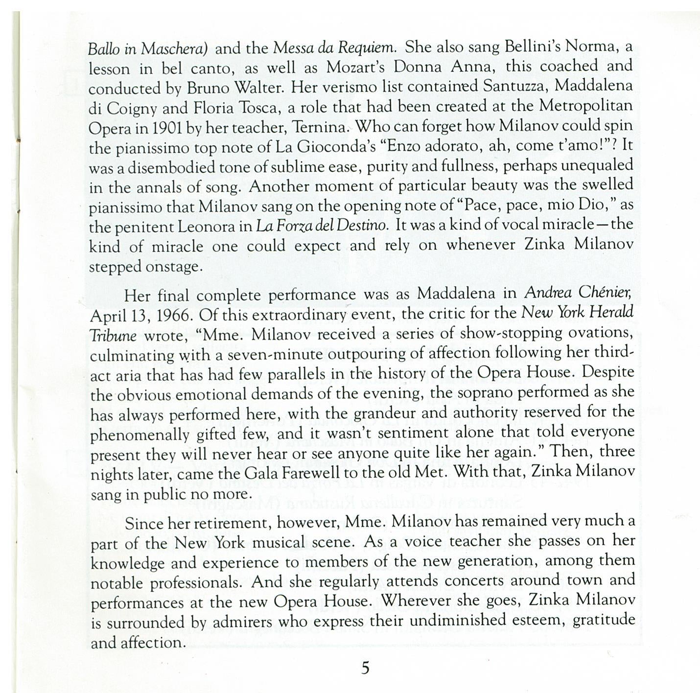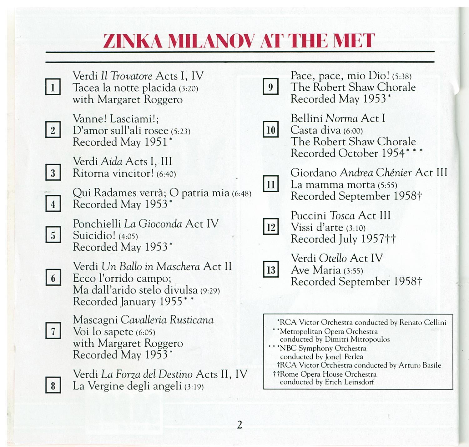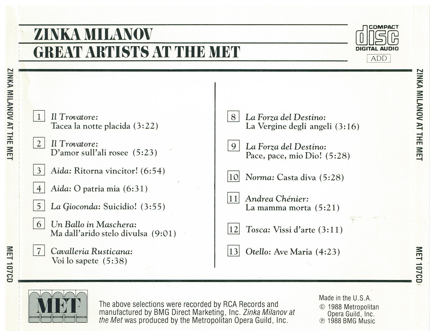 ZINKA MILANOV 'At The Met' MET 107CD