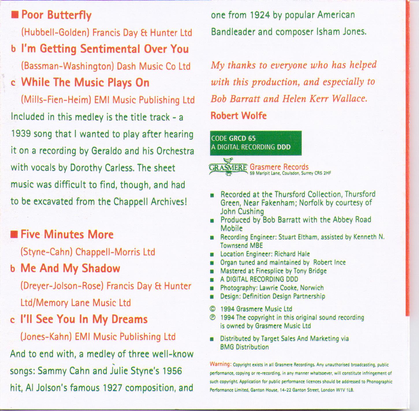 ROBERT WOLFE "While The Music Plays On" GRCD 65