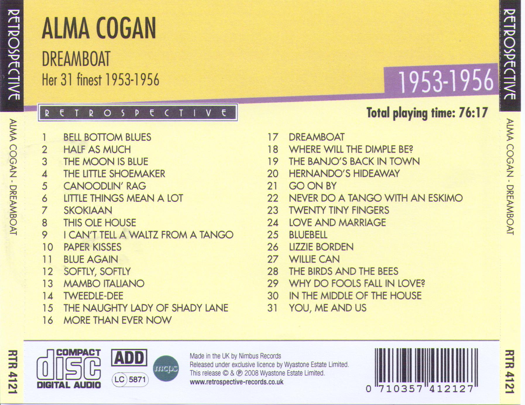 Alma Cogan Dreamboat RTR 4121