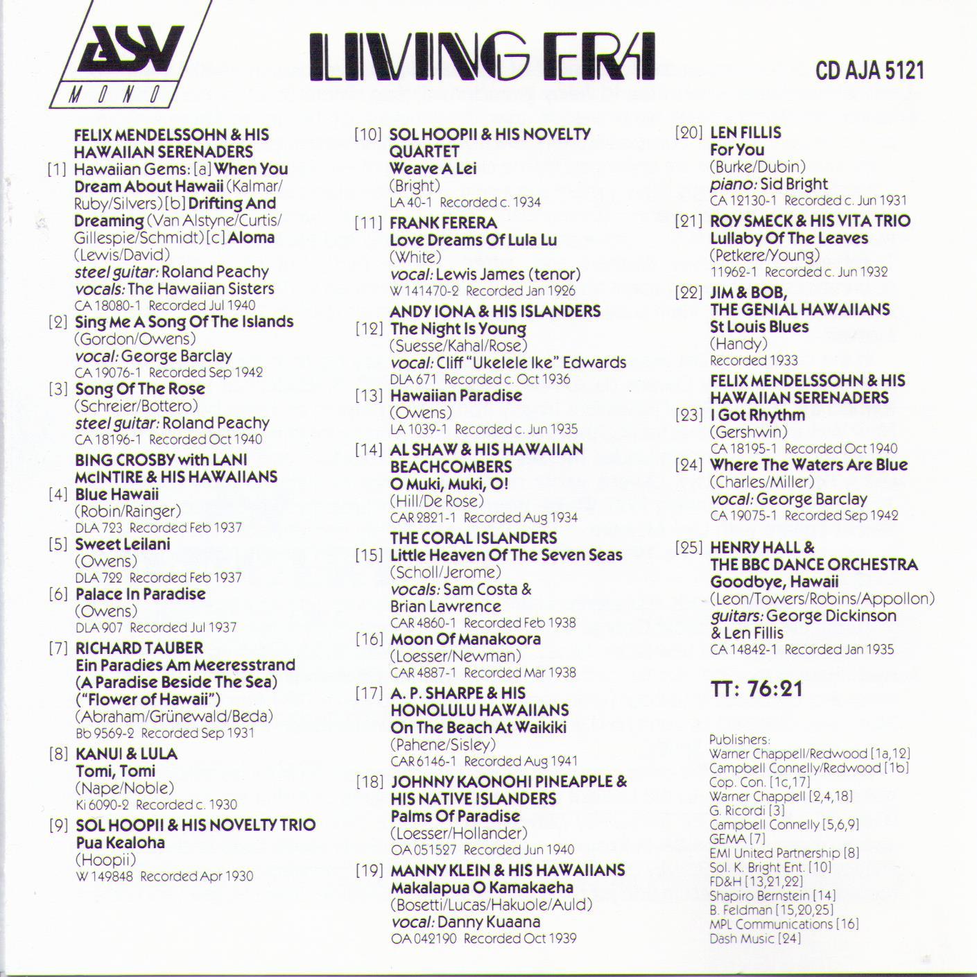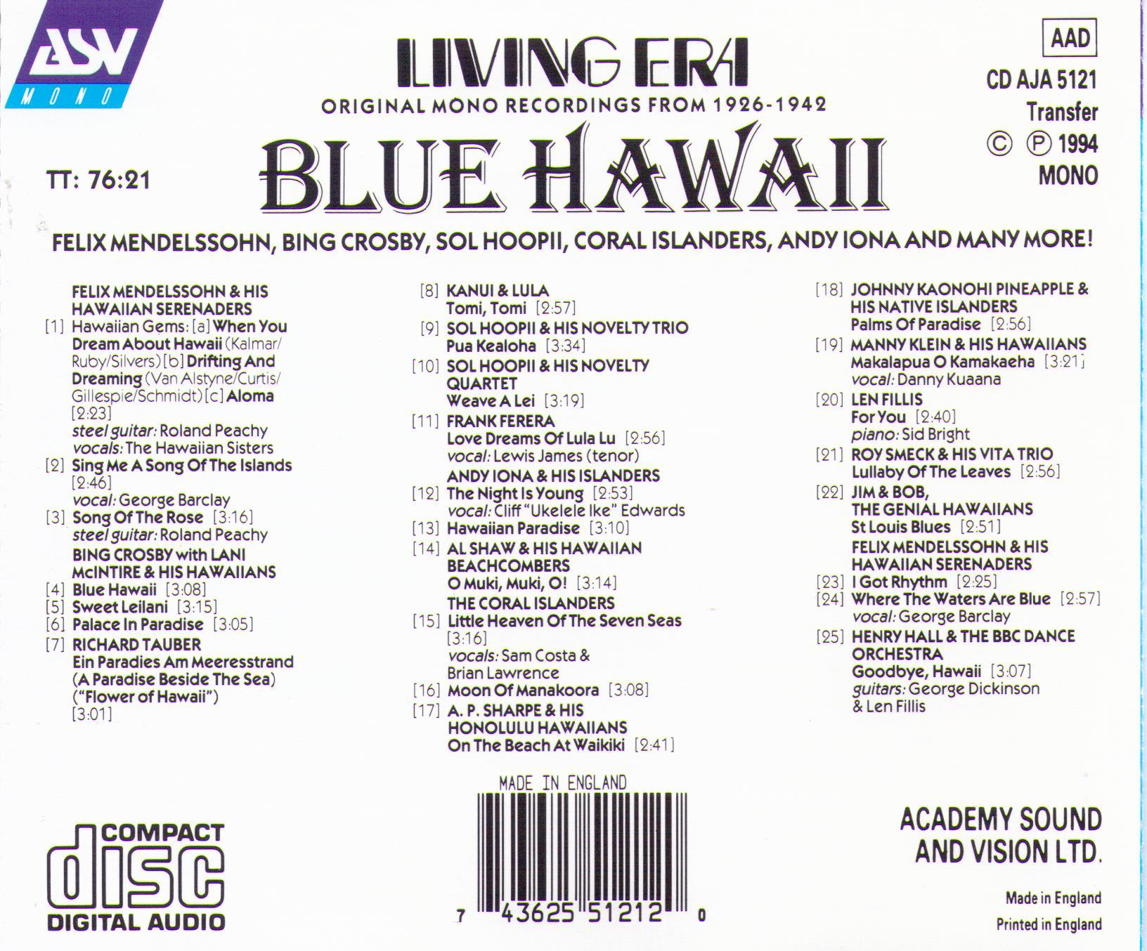 BLUE HAWAII - CD AJA 5121