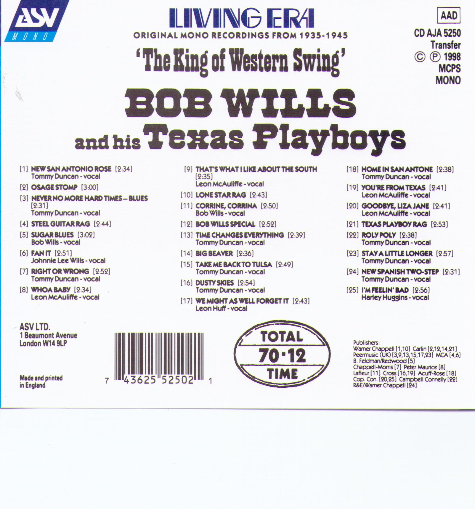 Bob Wills & his Texas Playboys "The King of Western Swing" - 25 Hits 1935-1945