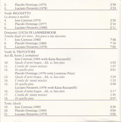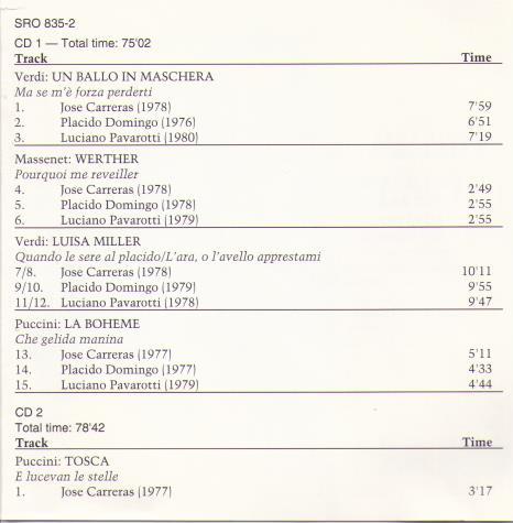 2-cd SRO 835-2 THE THREE TENORS in Live Performances each TENOR singing the SAME Aria / Operatic Scene