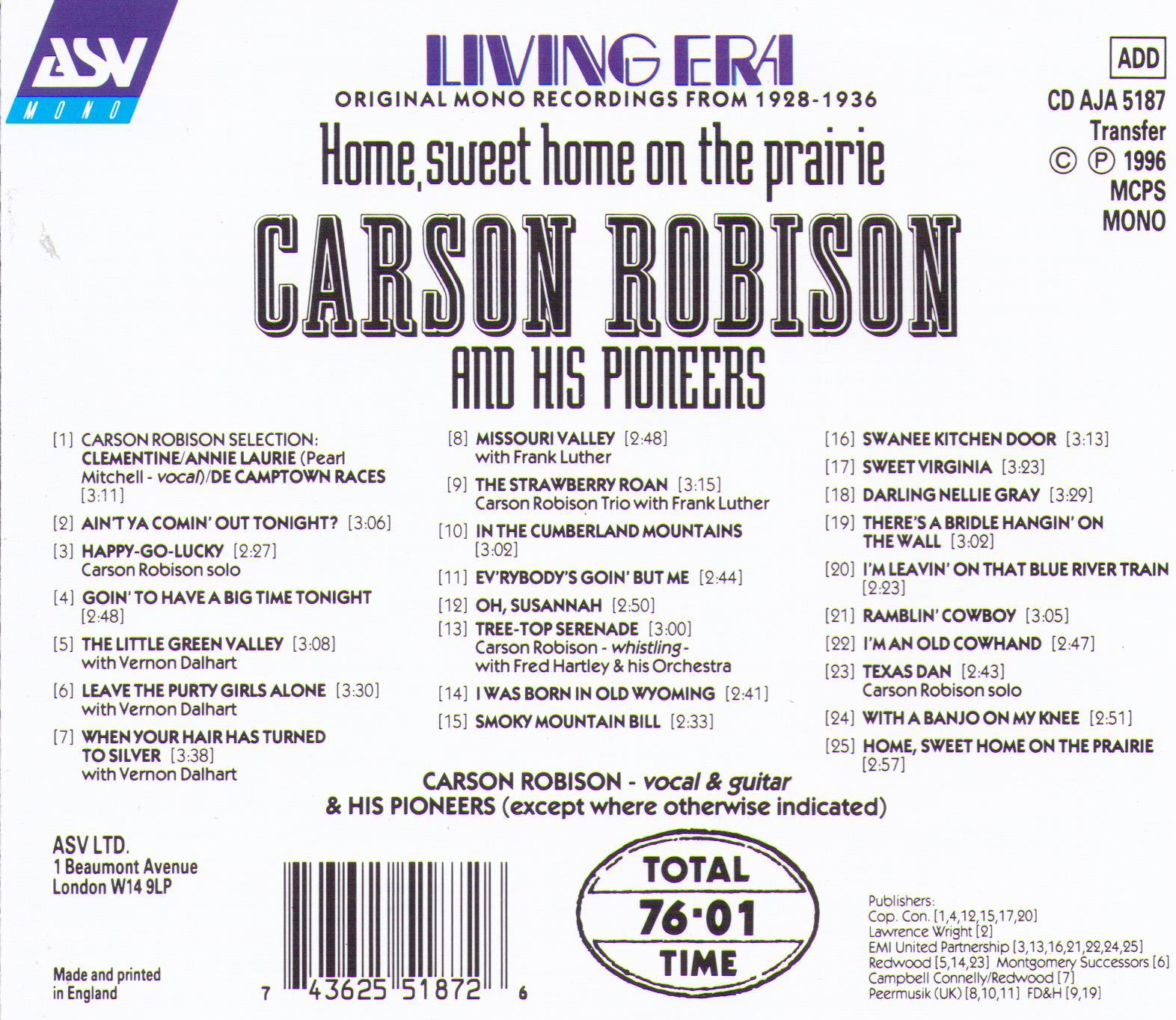 Dubbed "the grand-daddy of the hillbillies", Carson Robison was a seminal figure in the history of C & W. Outstandingly versatile, he was variously a whistler, crooner and accomplished composer and songwriter, guitarist, actor and all-round entertainer.