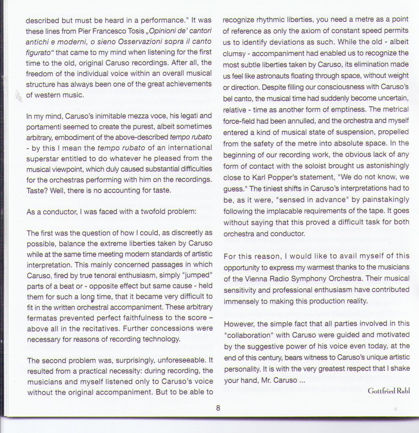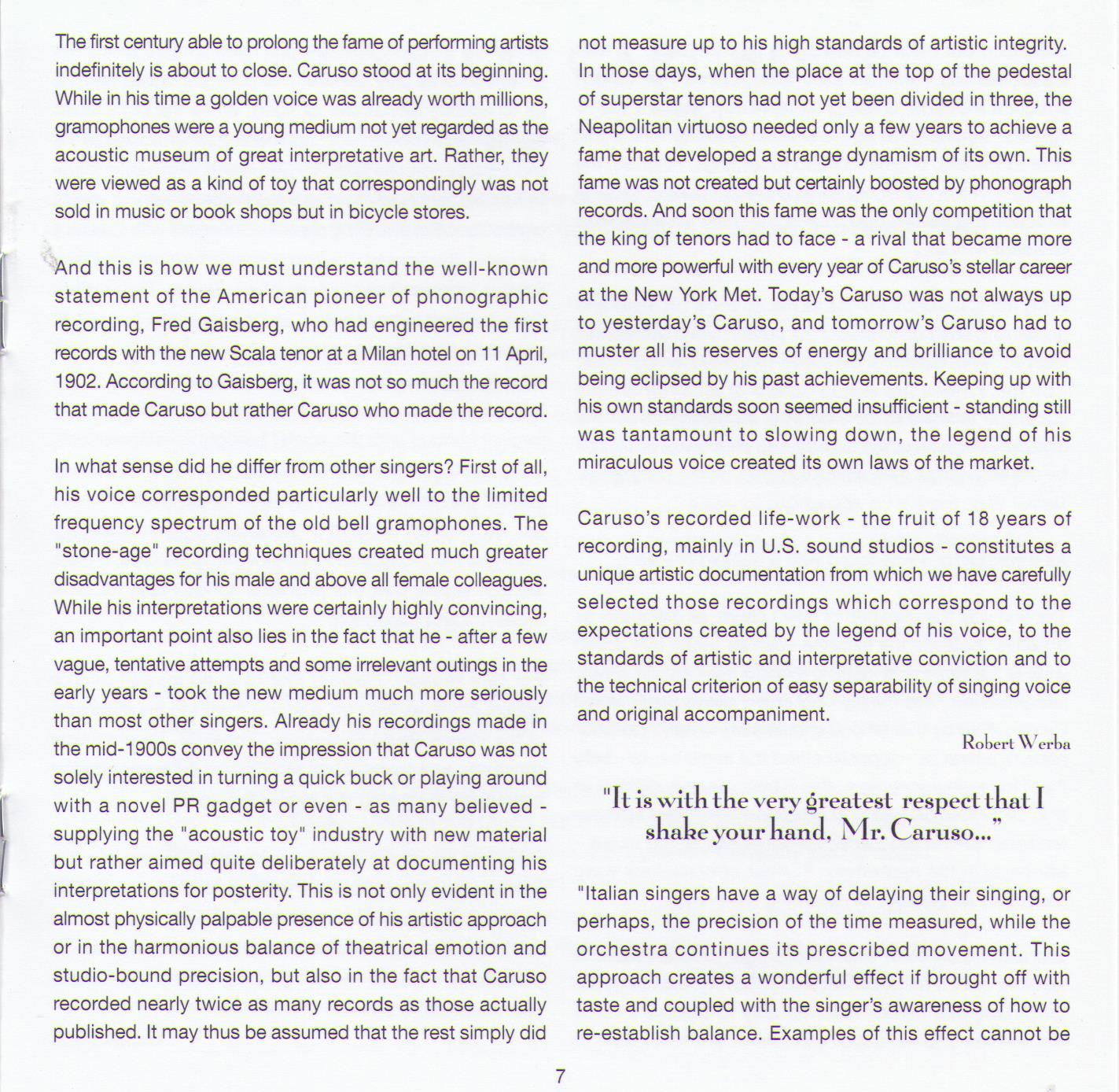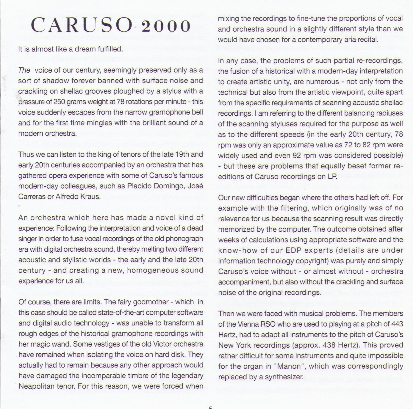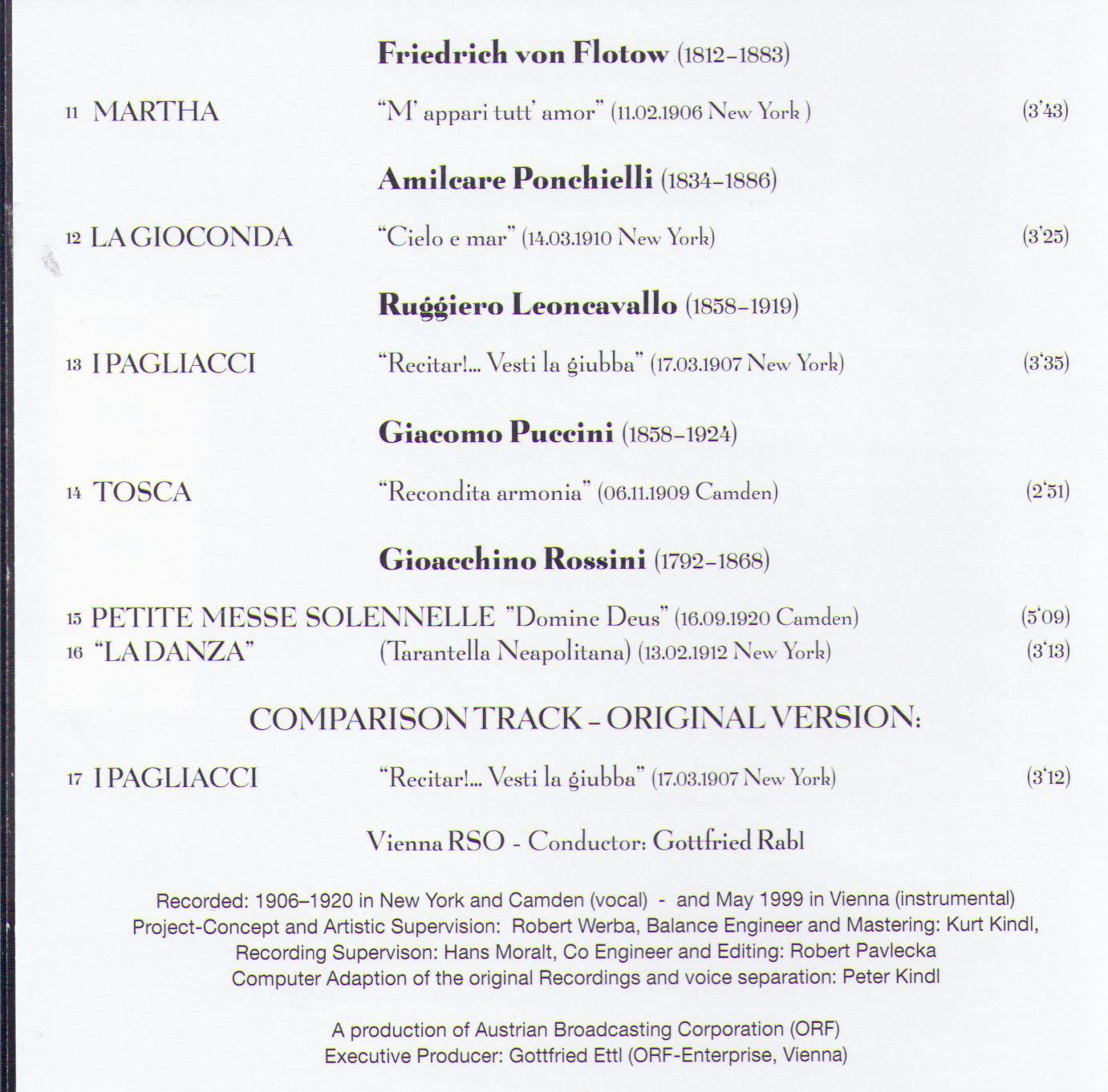 Enrico Caruso, the greatest recording artist of the early 20th Century, has long stood as the standard by which many subsequent singers have been judged. Now, through the miracle of DIGITAL TECHNOLOGY, Caruso's celebrated voice is accompanied by the modern Vienna Radio Symphony Orchestra in a landmark recording that extends his legendary interpretive artistry into the 21st Century.