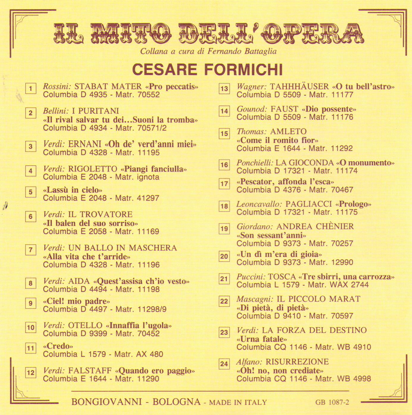 CESARE FORMICHI - Recital - GB 1087-2