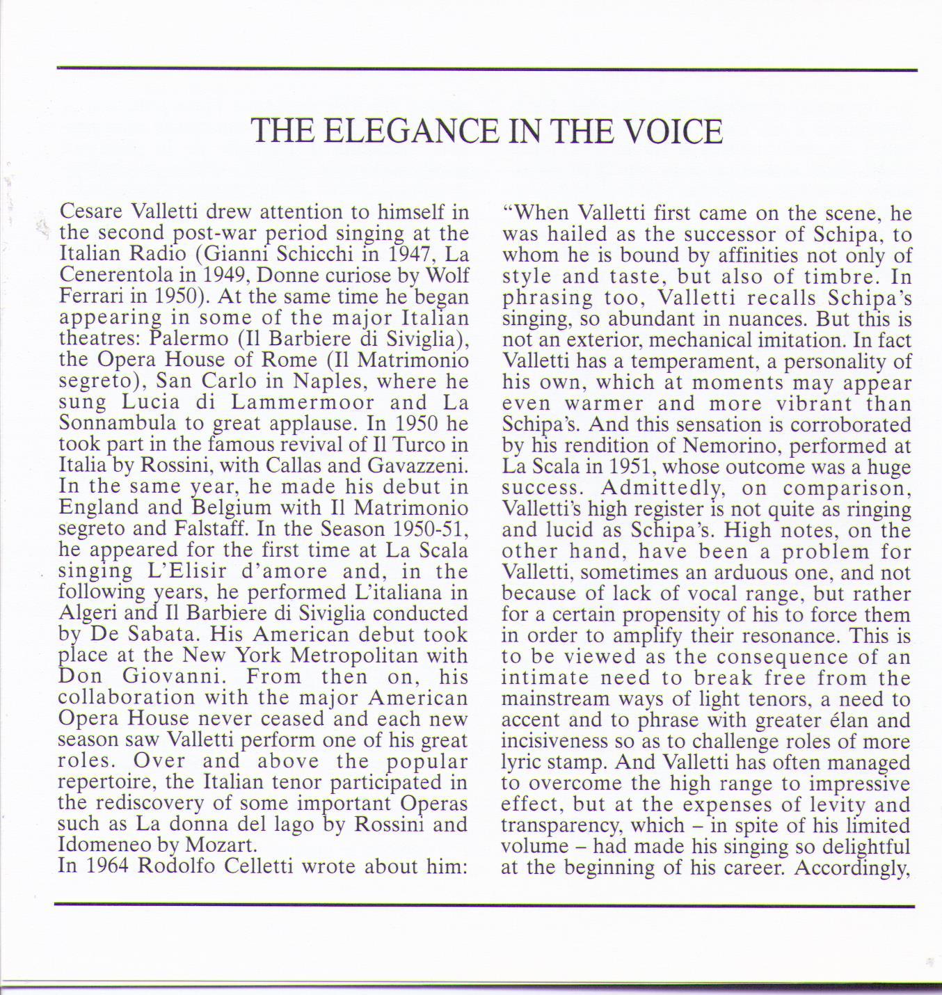 CESARE VALLETTI - 1949-1952 - URN 22.236 In 1964 Rodolfo Celeti wrote about him: "When Valletti first came on the scene, he was hailed as the successor of Schipa, to whom he is bound by affinities not only of style and taste, but also of timbre".