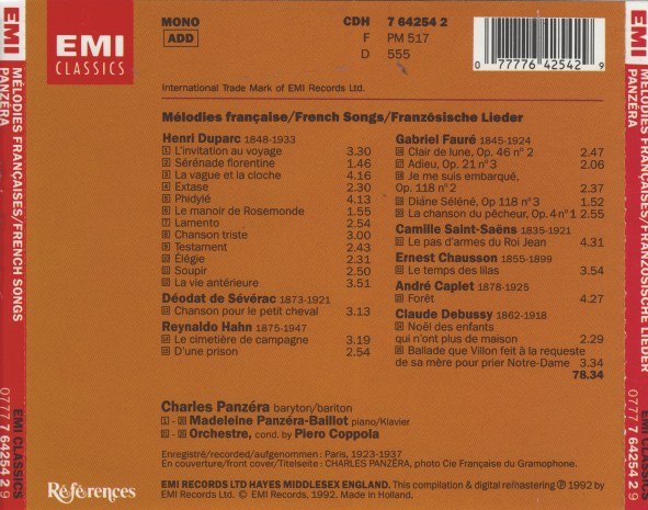 HENRI DUPARC; DEODAT de SEVERAC; REYNALDO HAHN; GABRIEL FAURE; CAMILLE SAINT-SAENS; ERNEST CHAUSSON; ANDRE CAPULET; CLAUDE DEBUSSY