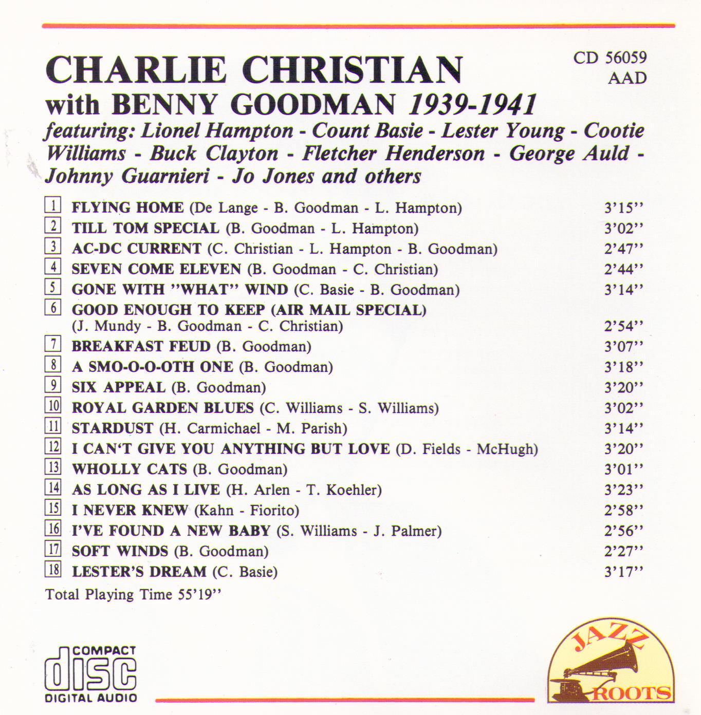 CHARLIE CHRISTIAN with Benny Goodman 1939-1941 - CD 56059 featuring Lionel Hampton - Cunt Basie - Lester Young - Cootie Williams - Buck Clayton - Fletcher Henderson - George Auld - Johnny Guarnieri - Jo Jones and others.