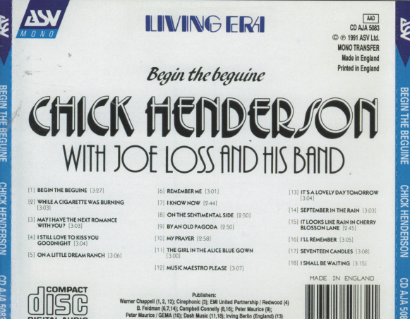 CHICK HENDERSON ' Begin The Beguine' CD AJA 5083