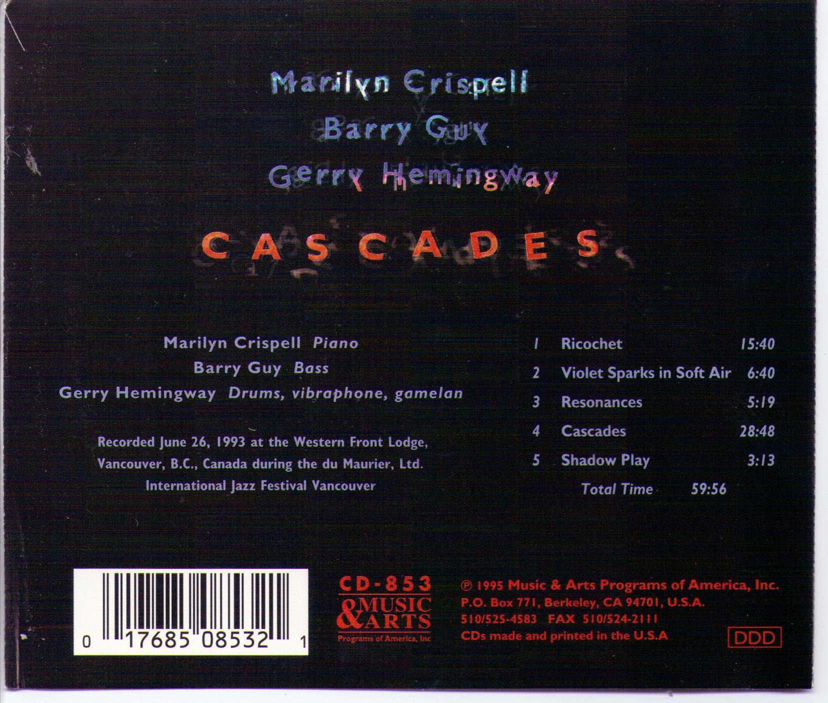 Crispell.Guy/Hemingway - MACD-853 Marilyn Crispell, piano Barry Guy, bass Gerry Hemingway, drums, vibraphone, gamelan CASCADES