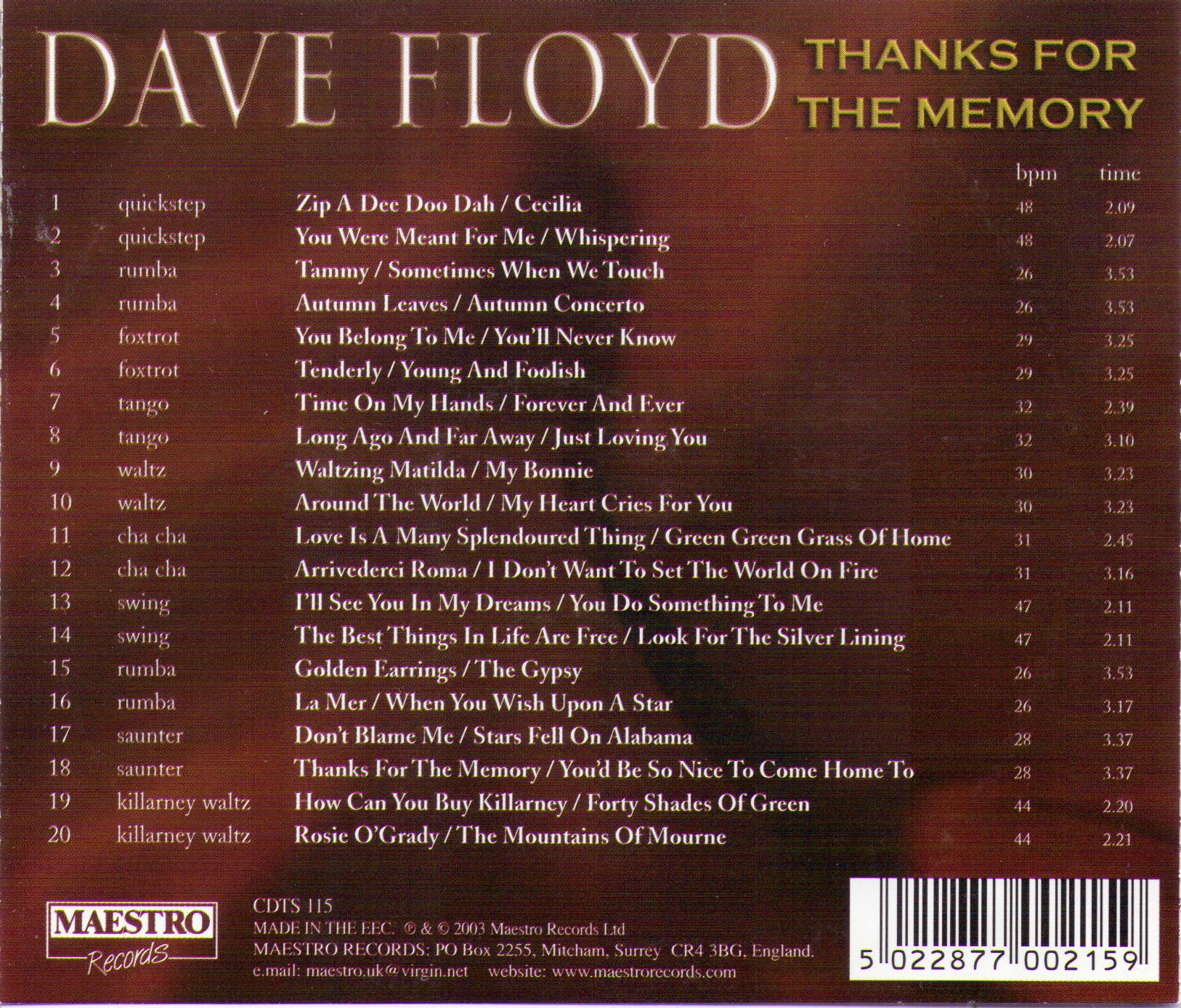 DAVE FLOYD "Thanks for the Memory" CDTS 115