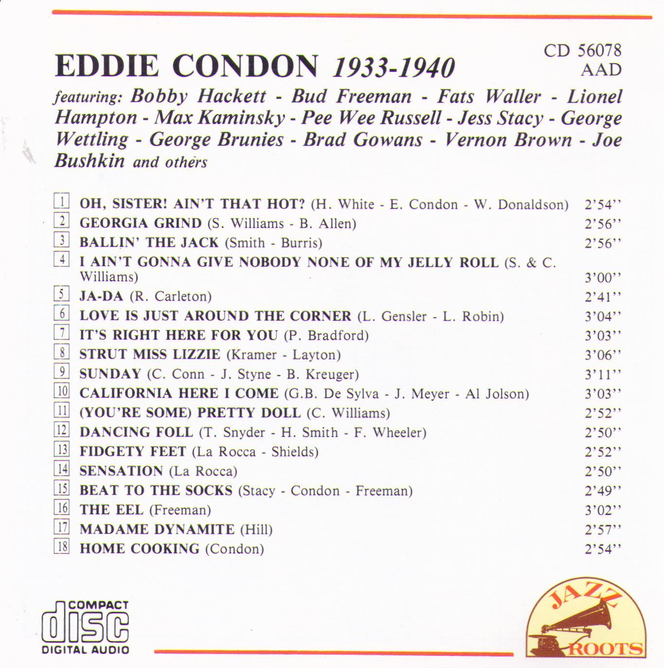 EDDIE CONDON 1933-1940 - CD 56078 featuring Bobby Hackett - Bud Freeman - Fats Waller - Lionel Hampton - Max Kaminsky - Pee Wee Russell - Jess Stacy - George Wettling - George Brunies - Brad Gowans - Vernon Brown Joe Bushkin and others