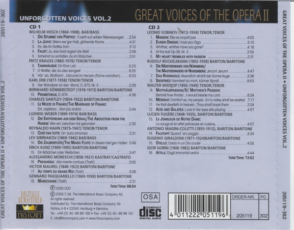 GREAT VOICES OF THE OPERA - 2CD 205119