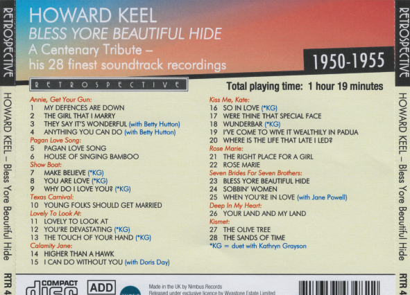 ANNIE GET YOU GUN; PAGAN LOVE SONG; ; SHOWBOAT; TEXAS CARNIVAL; LOVELY TO LOOK AT; CALAMITY JANE); KISS ME KATE; ROSE MARIE; SEVEN BRIDES FOR SEVEN BROTHERS; DEEP IN MY HEART; KISMET