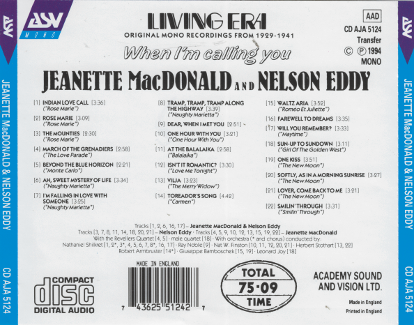 JEANETTE MacDONAL & NELSON EDDY 'When I'm Calling You' DDAJA 5124