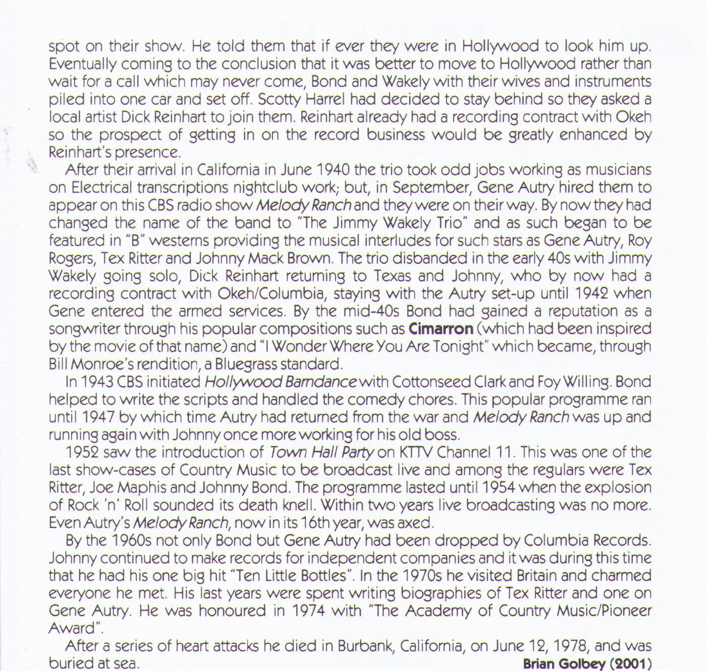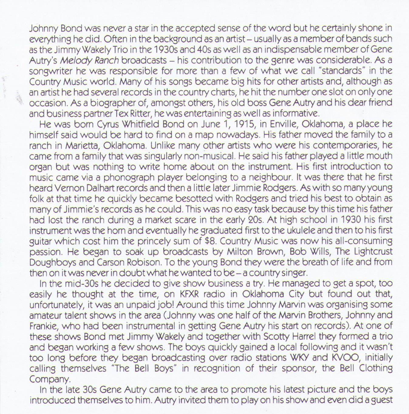 Johnny Bond - CD AJA 5360