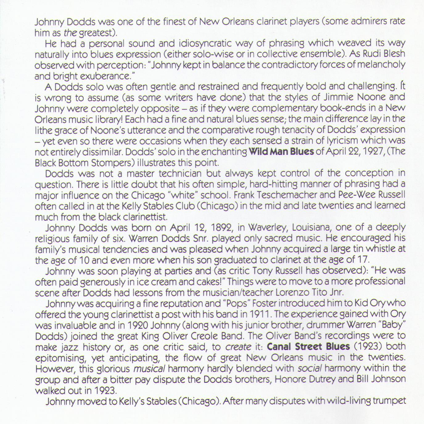 JOHNNY DODDS "Wild Man Blues" CD AJA 5252