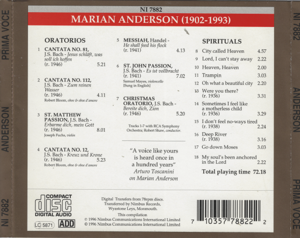 MARIAN ANDERSON -Oratorios-Spirituals - NI 7882