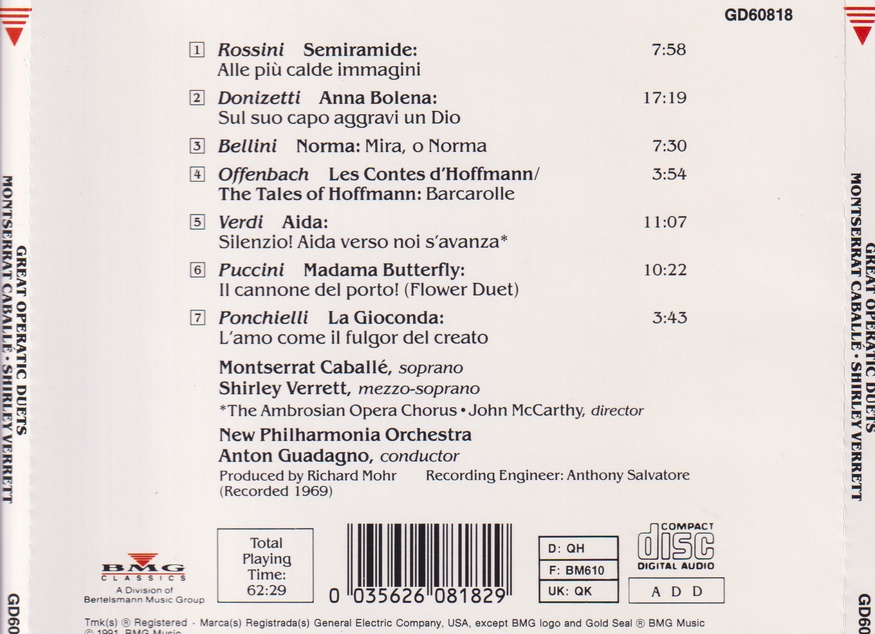 Parsifal, Anna Bolena, Norma, Tales Of Hoffman (Barcarolle), Aida, Madama Butterfly (Flower Duet)La Gioconda