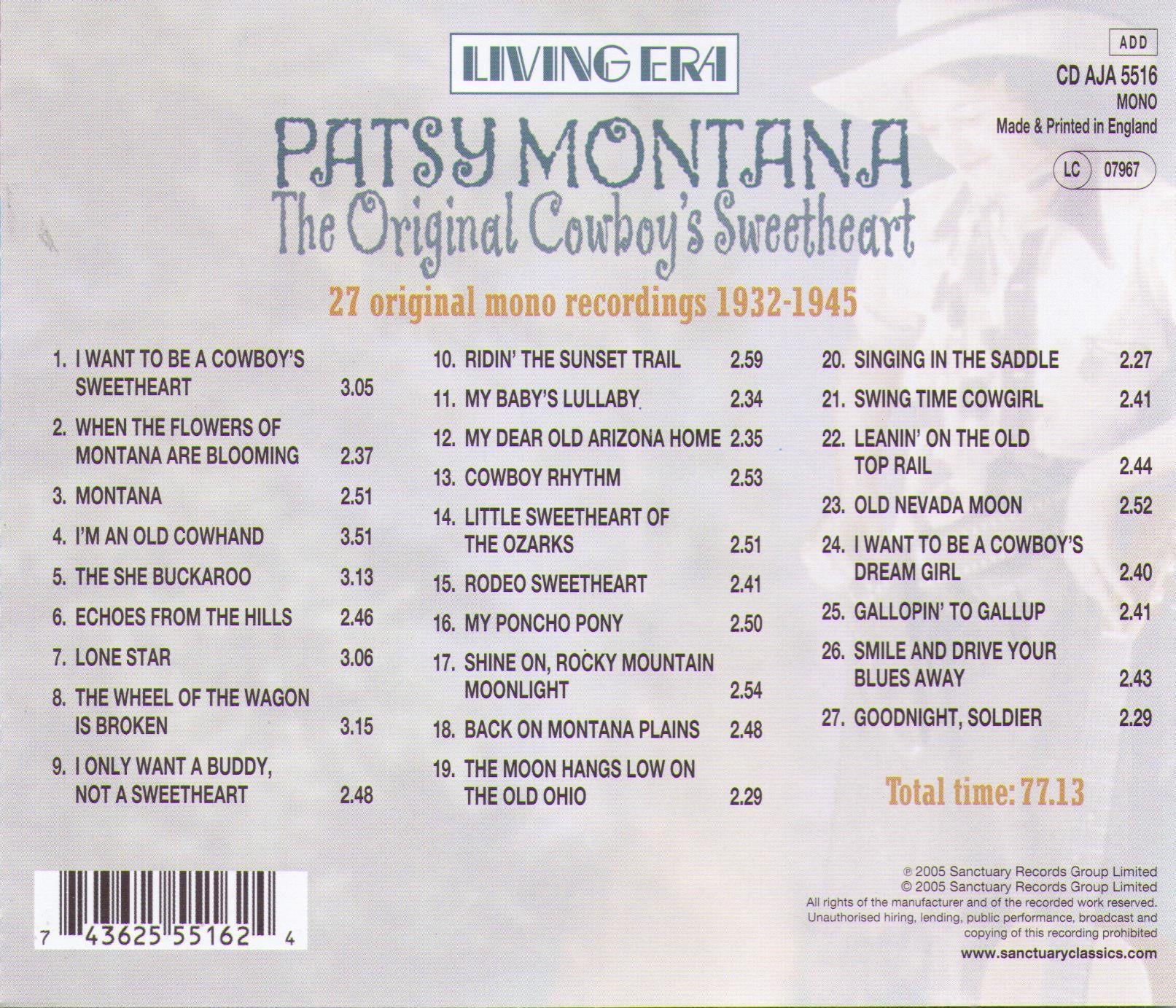PATSY MONTANA - The Original Cowboy's Sweetheart - CD AJA 5516 27 Original recordings 1932-1945