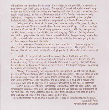 RY COODER 'A Meeting by the River' WLA-CS-29-CD