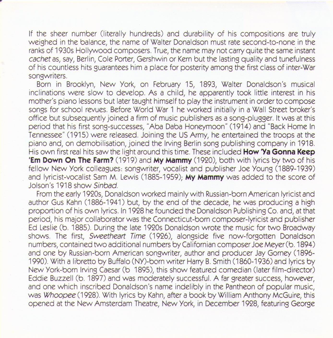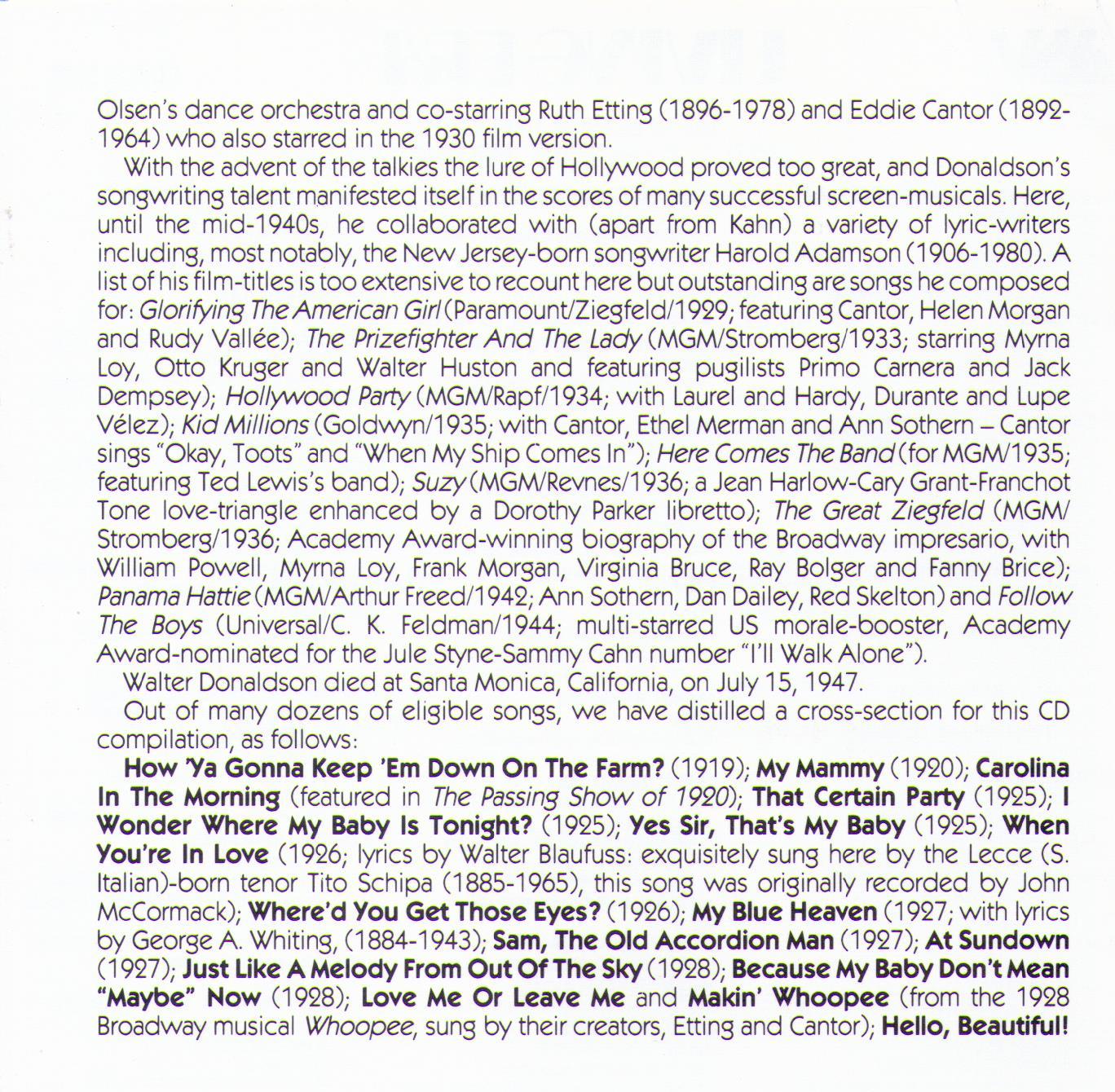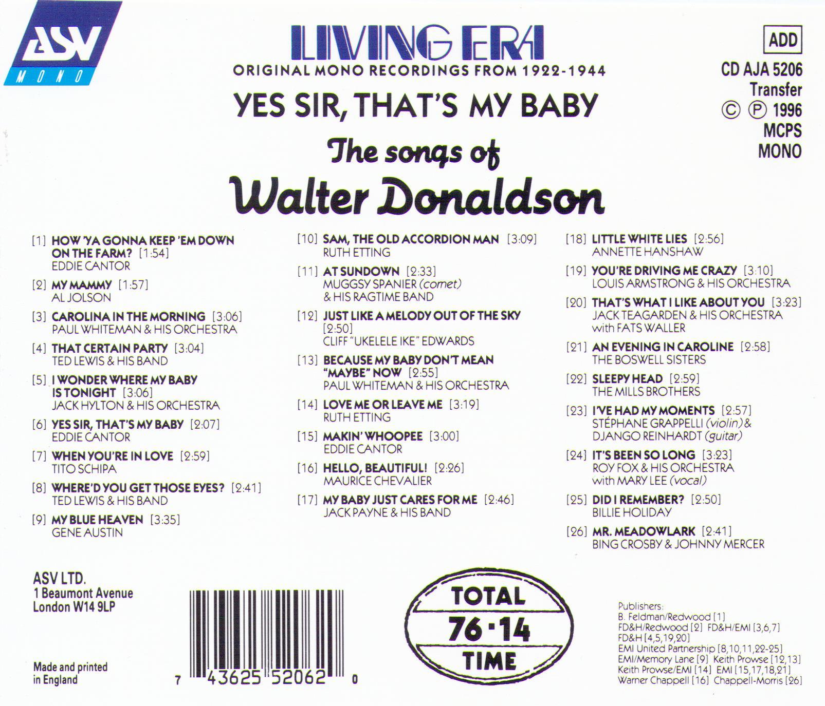 "Yes Sir, That's My Baby" The songs of WALTER DONALDSON Various Artists