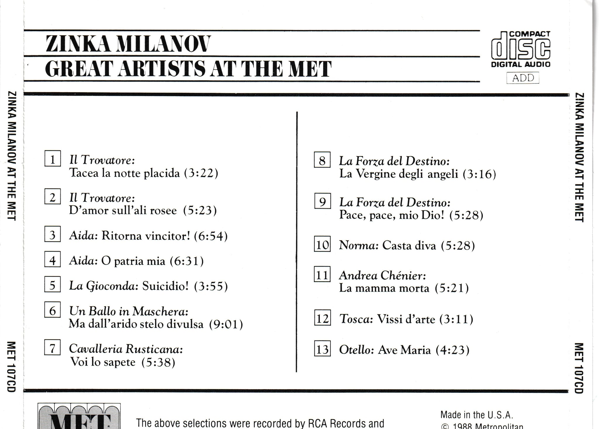 ZINCA MILANOV - MET 107CD